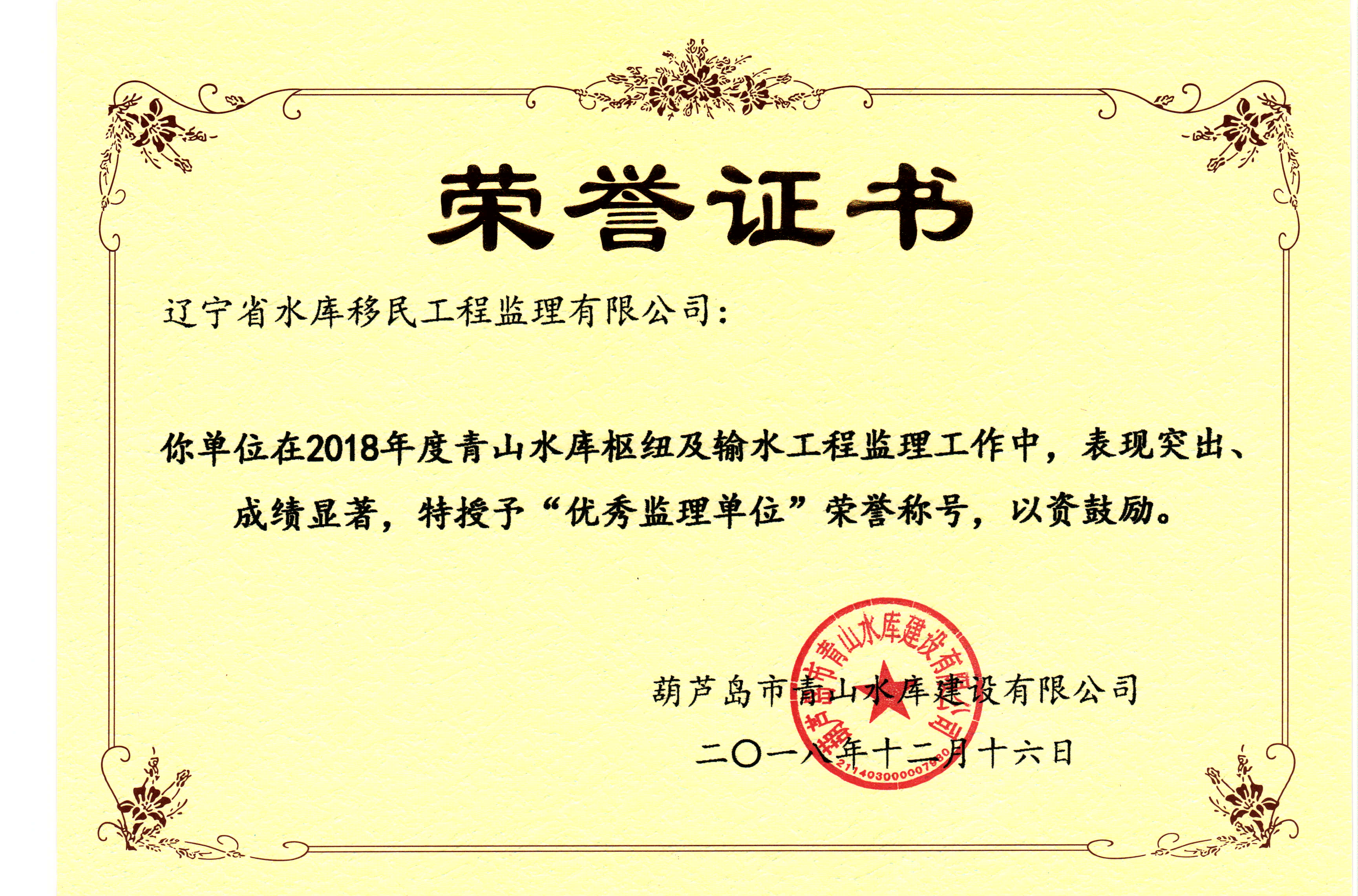 青山水庫優(yōu)秀監(jiān)理單位